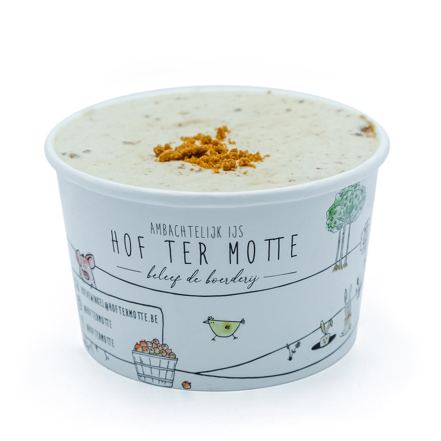 Ambachtelijk speculoos ijs gemaakt van de enige echte Lotus speculoos koekjes en verse hoevemelk.